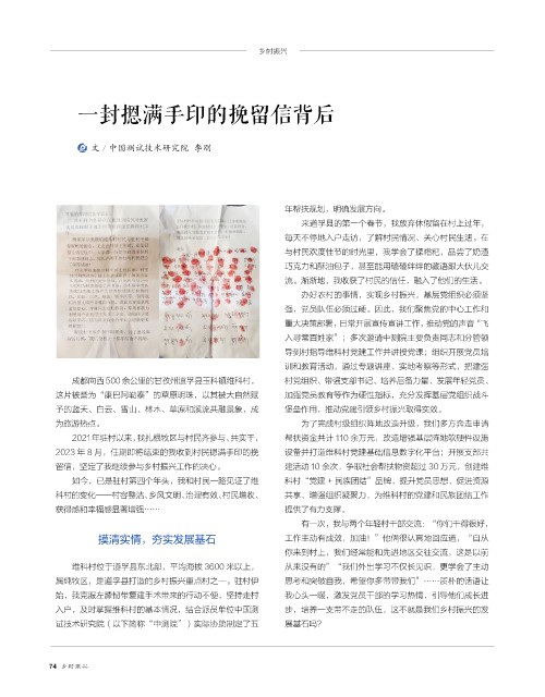 留信,坚定了我继续参与乡村振兴工作的决心。 建活动 10 余次,争取社会帮扶物资超过 30 万元,创建维